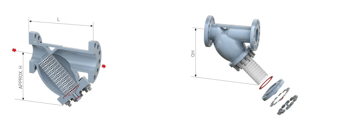 萊克進口Y型過濾器是除去液體中少量固體顆粒的小型設備,可保護設備的正常工作,當流體進入置有一定規格濾網的濾筒后,其雜質被阻擋,而清潔的濾液則由過濾器出口排出,當需要清洗時,只要將可拆卸的濾筒取出,處理后重新裝入即可,因此,使用維護極為方便。Y型過濾器又名除污器、過濾閥,是輸送介質的管道系統不可缺少的一種裝置