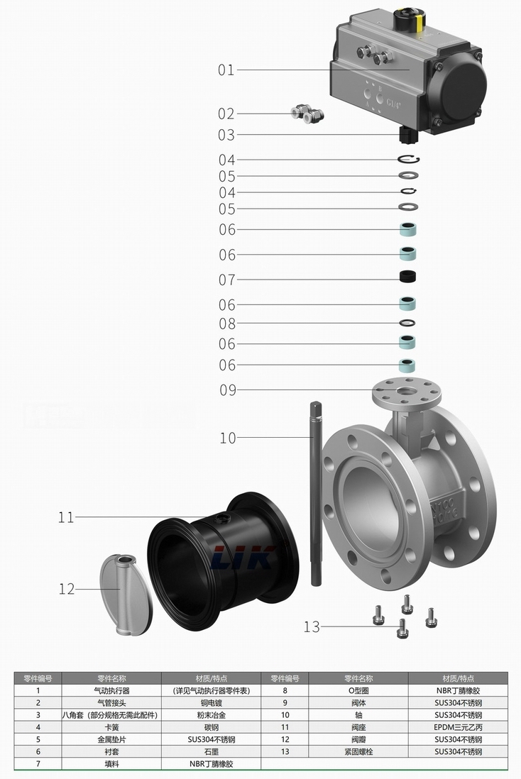 進(jìn)口氣動(dòng)中線法蘭蝶閥零件材質(zhì)