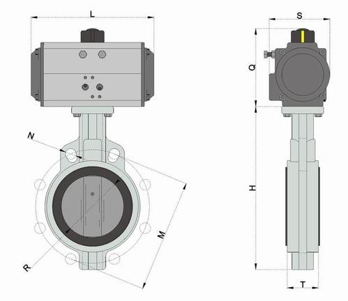 進口氣動對夾式襯膠蝶閥通過氣動執(zhí)行機構驅(qū)動蝶板旋轉,實現(xiàn)流體的快速啟閉與流量調(diào)節(jié)27。其采用對夾式連接設計,無需額外法蘭,顯著節(jié)省安裝空間,尤其適用于緊湊型管道系統(tǒng)(如船舶、化工裝置)56。閥體內(nèi)壁及蝶板表面襯覆橡膠材料(如NBR、EPDM、FKM),兼具耐腐蝕性與密封性能,可適配腐蝕性介質(zhì)及衛(wèi)生要求較高的場景