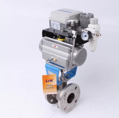 2.調(diào)節(jié)型氣動(dòng)球閥的閥芯為V型球芯,采用固定式結(jié)構(gòu),球芯上帶有V型切口,在執(zhí)行器上加裝定位器可實(shí)現(xiàn)對(duì)含纖維、顆粒狀介質(zhì)比例調(diào)節(jié)。